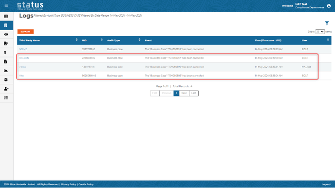 BCLP Cancellation Log: