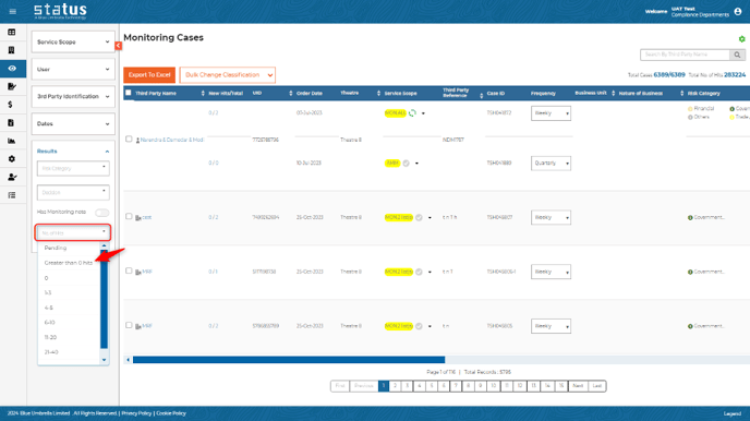 Clients can now select “Greater than 0” within Monitoring Cases filter to easily review their findings.
