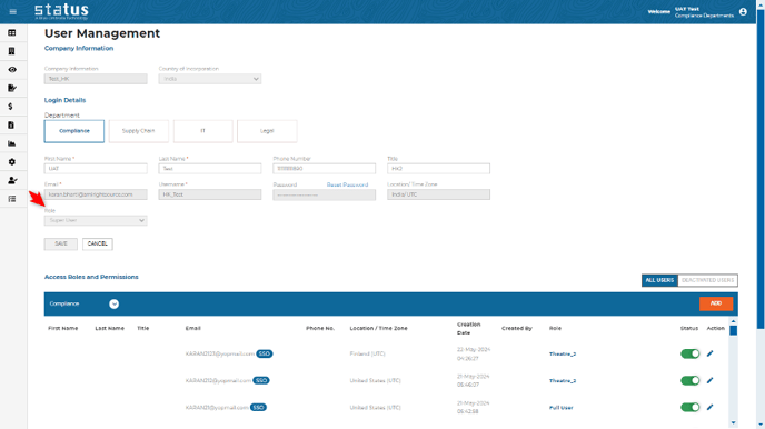 User Management Role: