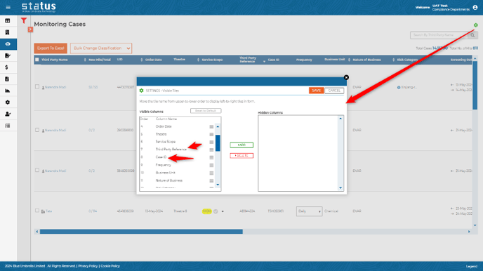 Users can now view, sort, and hide Third Party Reference and Case ID on monitoring cases.
