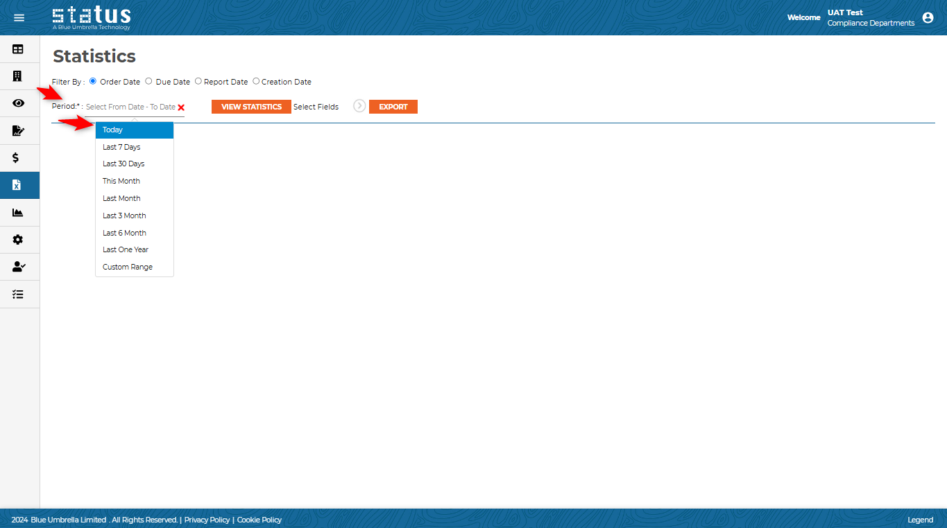 Users can now leverage the dynamic date filtering set on any saved query on Statistics. Once the user selects the saved query, the date(s) will be updated automatically based on the saved query, for example, “today.”