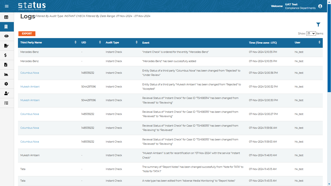 Users can now have an audit trail of any action taken on instant check from the Logs page.