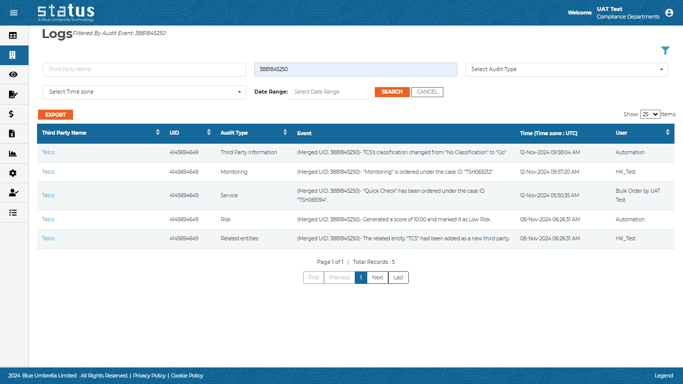 The merged ID is now available on the logs page for better identification of the merged third parties.