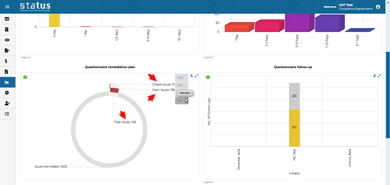Users can now view the graph “Questionnaire remediation plan” on a new format allowing them to download the data into a CSV file.