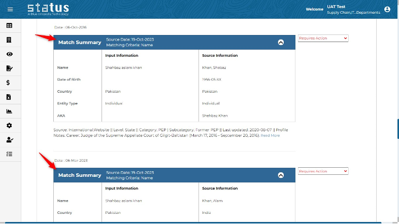 Now users can save time as they can view the full match summary before clicking on Read More while reviewing monitoring hits on the Risk & Hits Summary Business Intelligence page.