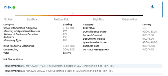 The risk score will be calculated based on the fields for which data is provided. It is not mandatory to provide values for all fields, but at a minimum Status requires the Country of Operations.